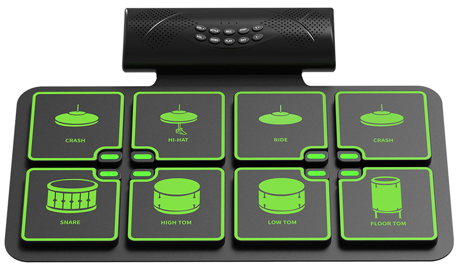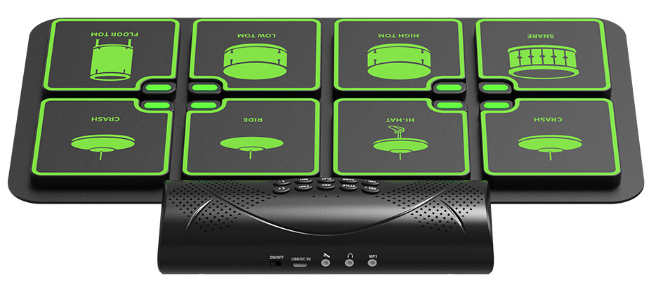 Xiaomi Roll Up Drum Kit MD863 - компактная портативная барабанная установка. Выполнена из гибкого силикона, благодаря чему легко сворачивается в рулон. В набор входят 8 пэдов, включая райд, хай-хэт, том-том, малый барабан и крэш, 2 ножные педали, 2 барабанные палочки. Доступно 7 тонов, 9 ритмических паттернов, 10 демо мелодий. Регулируемые громкость и темп. Помимо встроенного динамика устройство поддерживает подключение наушников, колонок. Устройство может быть подключено к компьютеру через Midi-выход или Micro-USB. Совместимо с Cakewalk, Sonar, Cubase, Nuendo и др. основными музыкальными ПО, а также совместимо с VST/VSTi.