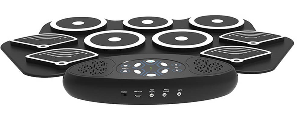 Xiaomi Roll Up Drum Kit MD362 – портативная электронная барабанная установка на силиконовом коврике. Она включает в себя 9 чувствительных к силе удара пэдов: хай-хэт, 2 крэша, райд, малый барабан, 3 тома и бас-бочку. В контроллер встроены 11 демо-песен, 7 тонов и 9 ритмов. В комплект входят 2 ножные педали и пара барабанных палочек. Аккумулятор на 1200 мАч позволяет играть без подключения к сети. Можно подключить колонки и наушники.