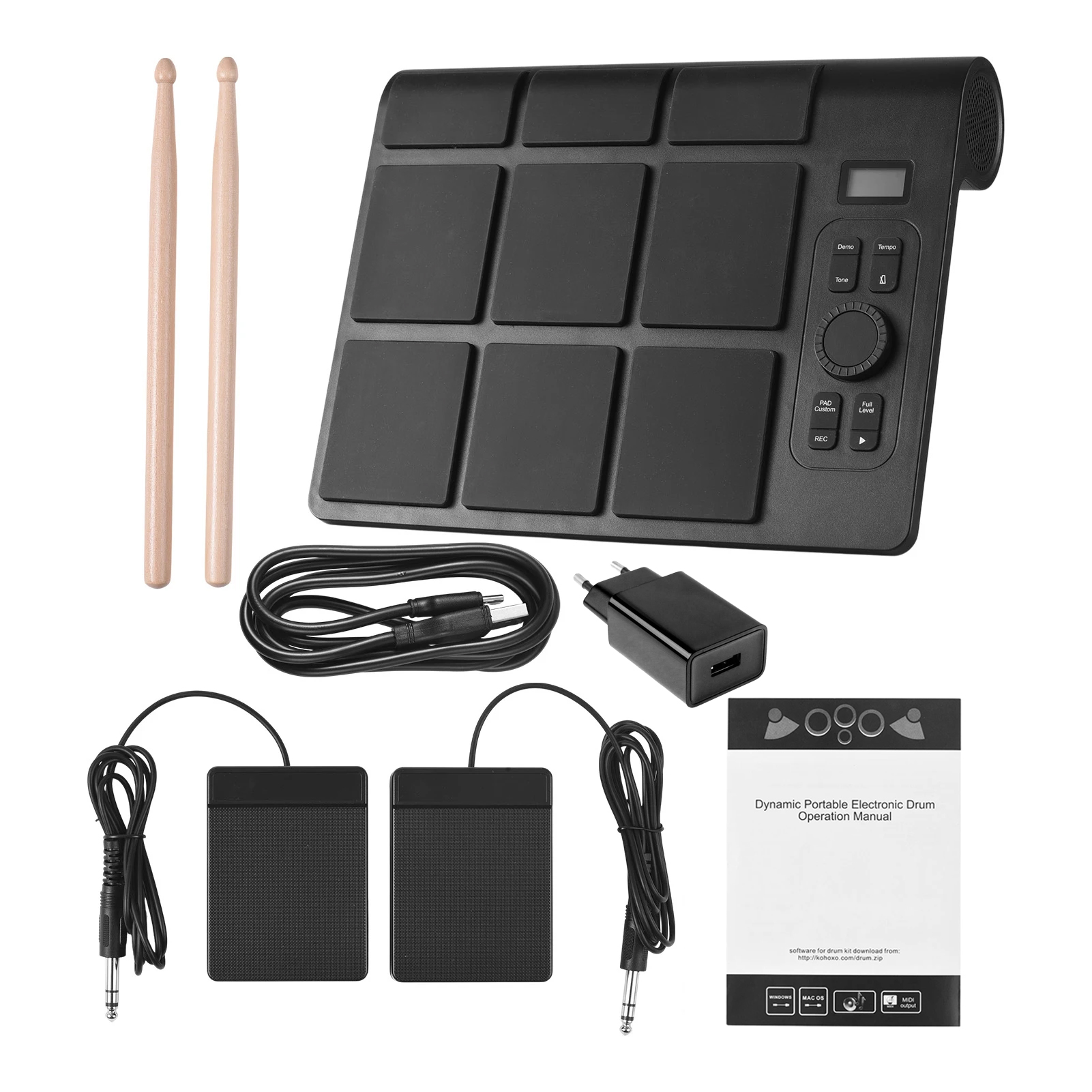 Xiaomi Dynamic Drum Pad ED02 – электронный драм-пад с чувствительностью к силе удара. Установка имеет встроенный динамик, а также поддерживает подключение наушников и колонок. Интеллектуальная подсветка обеспечивает визуальную обратную связь при ударе. Подключайте к компьютеру и используйте как MIDI-клавиатуру. Литий-ионный аккумулятор на 2000 мАч позволяет брать драм-пад с собой и играть удалённо от сети. Xiaomi Dynamic Drum Pad ED02 имеет встроенные функции: 10 демо-мелодий, 16 звуков барабанов, запись и воспроизведение ваших ритмов. В комплект к электронной ударной установке идут две ножные педали, палочки, кабель и блок для зарядки.