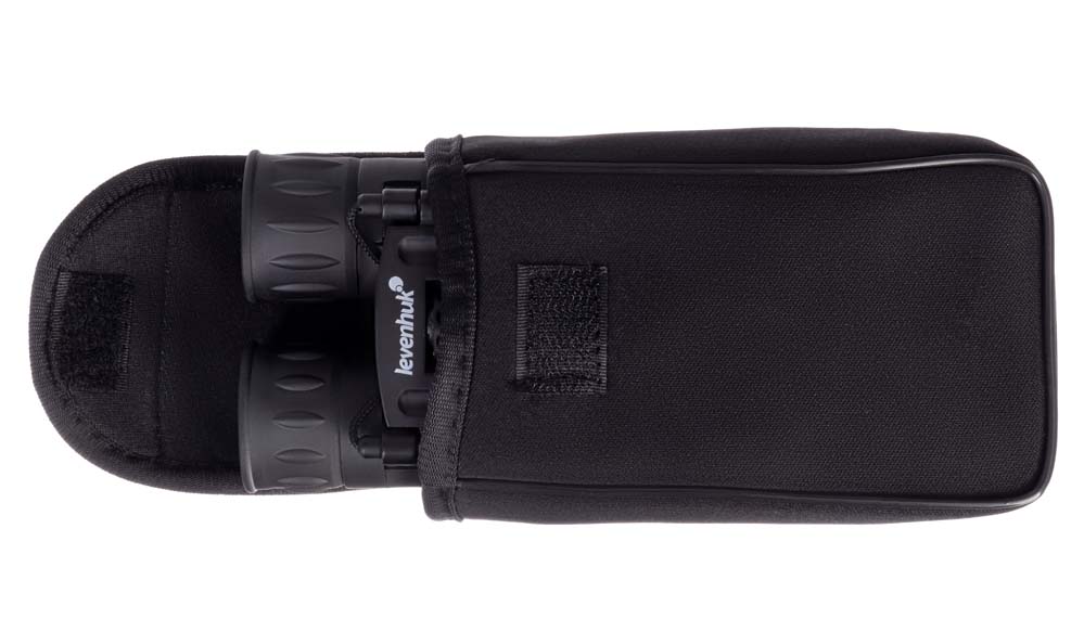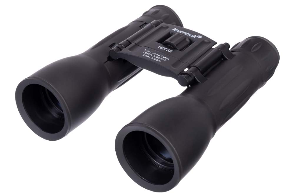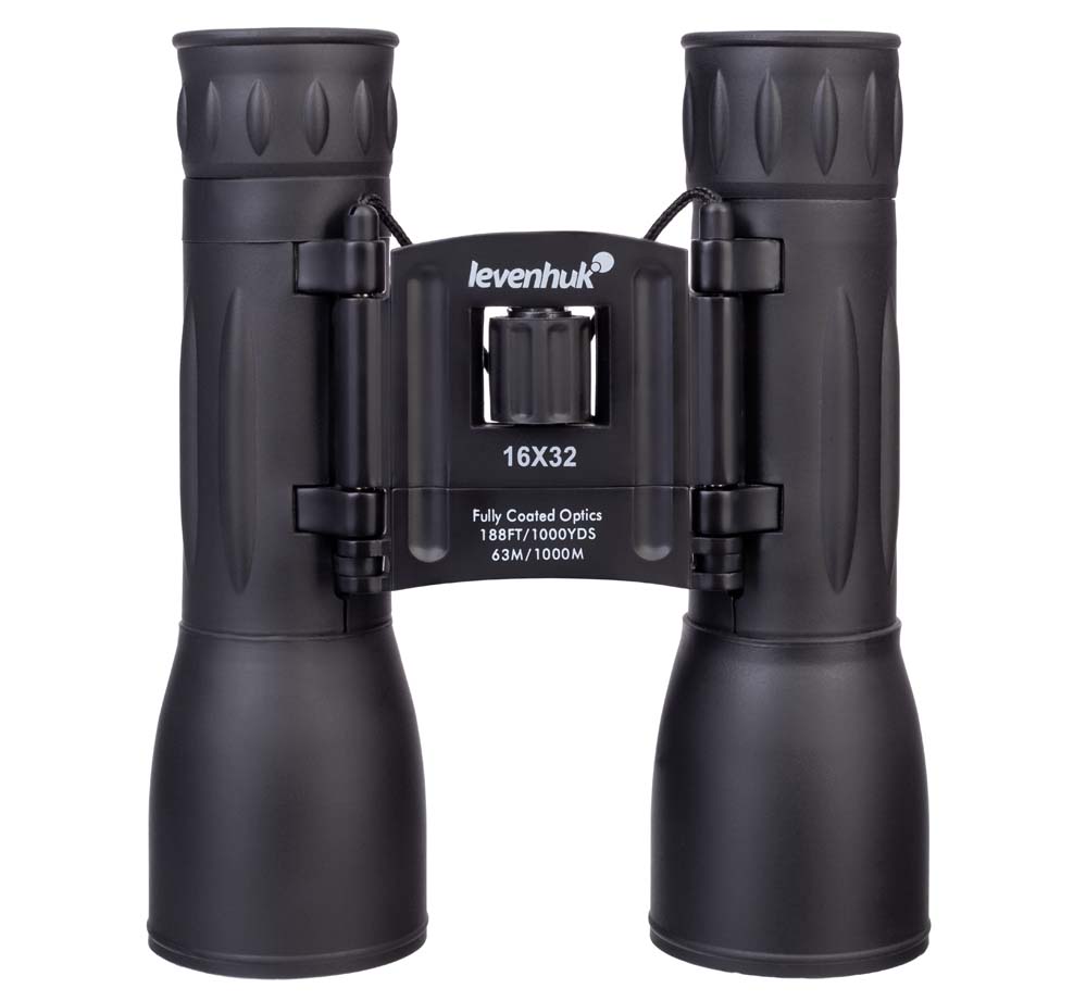 Бинокль Levenhuk 16x32 можно подстроить под индивидуальные особенности каждого пользователя: межзрачковое расстояние регулируется, а на правом окуляре есть кольцо настройки диоптрий. Для удобства наблюдения окуляры снабжены мягкими наглазниками. Корпус покрыт резиновой оболочкой, смягчающей удары и защищающей оптику от попадания грязи и пыли.