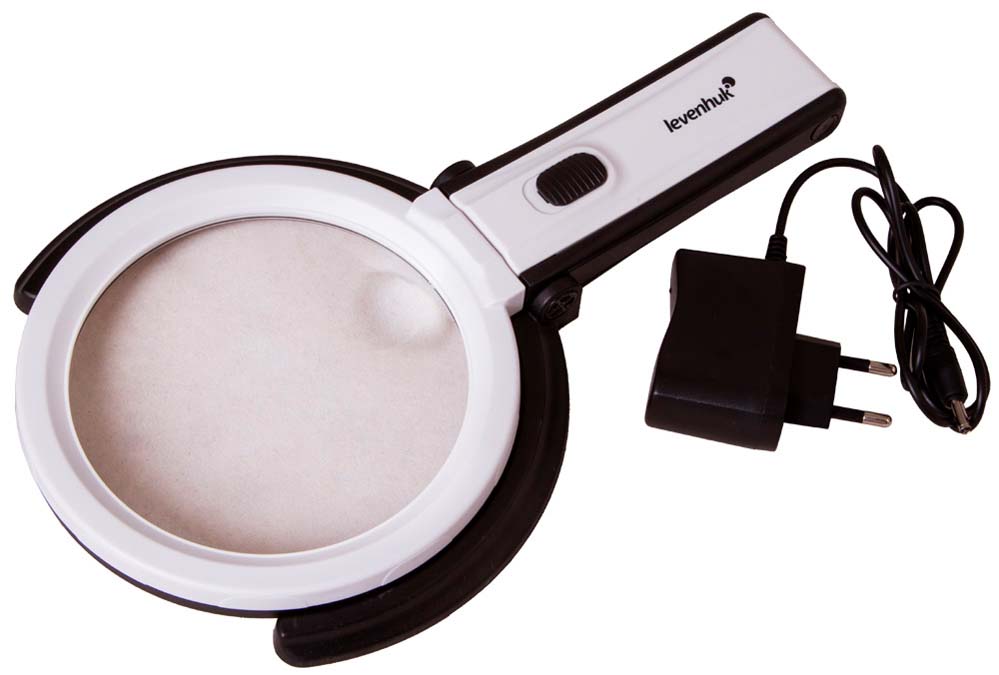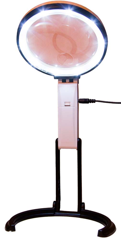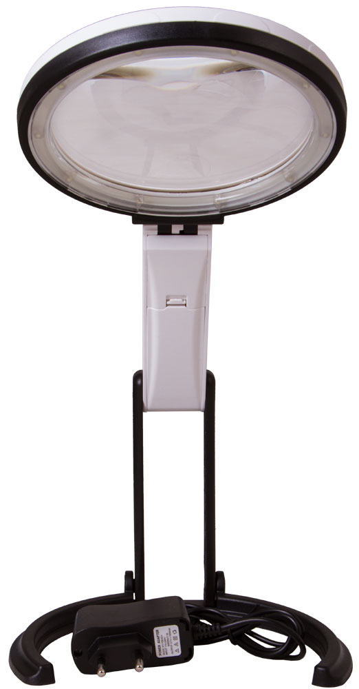 Подсветка лупы состоит из 10 ярких светодиодов, которые расположены вокруг бифокальной линзы. Свет от них падает равномерно, создавая минимальное количество теней. Подсветка работает от батареек или от сети.