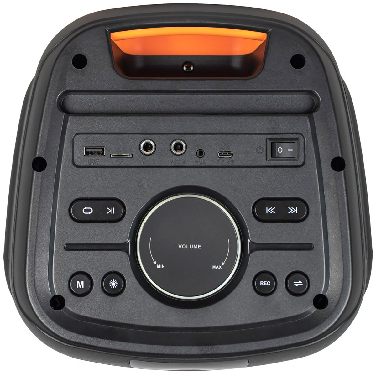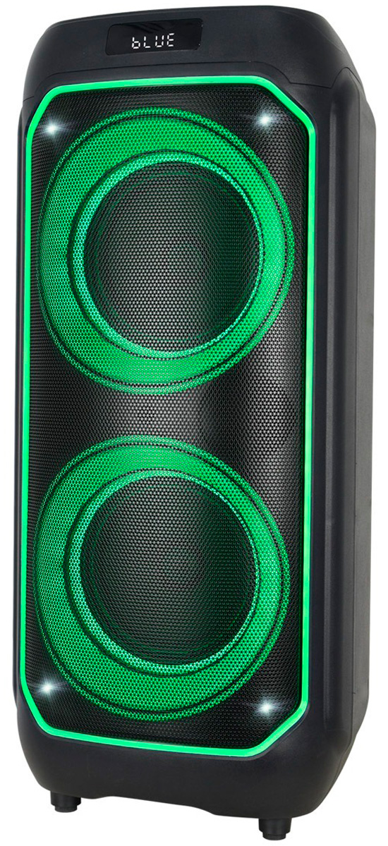 Mivo MD-857 – это мощная напольная беспроводная колонка с двумя сабвуферами и твитером, которая выдаёт звук пиковой мощностью 1000 Вт и имеет динамическую RGB-подсветку с девятью режимами. Колонка поддерживает аудиоформаты MP3, WMA и WAV, воспроизводит музыку с USB и TF-карт (до 128 ГБ), подключается через Bluetooth версии 5.3 и имеет радиус действия до 10 метров. Есть цифровой FM-тюнер с диапазоном 87,5–108 МГц. Имеет два входа для микрофонов с разъёмами 6,35 мм jack. Поддерживает режим TWS (сопряжение из двух колонок). Имеет LED-дисплей. Встроенный литиевый аккумулятор ёмкостью 7,4 В / 4400 мАч обеспечивает автономную работу колонки. Корпус выполнен из пластика, есть защита от влаги (степень защиты — IP50).