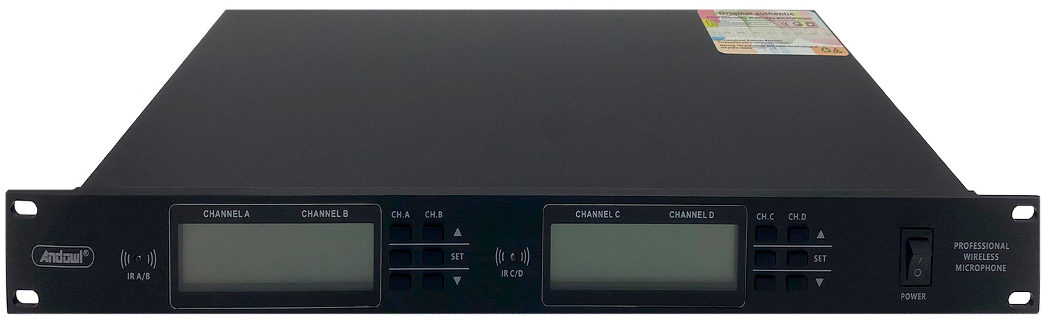 Andowl Wireless Microphone Set 4pcs (Q-MIC65) – набор из 4 высококачественных беспроводных микрофонов с частотной характеристикой 50 Гц-15 кГц, которые обеспечат чистый и красивый звук без искажений и подойдут для различных выступлений, лекций, караоке и не только. Микрофоны совместимы со многими устройствами, такими как микшерные пульты, наружные колонки и т. д. Имеется надежная и стабильная способность приема, с широким диапазоном рабочего покрытия. Диапазон частот UHF: 640-690 МГц. Питание приемника: DC 13,5 В-15 В. Максимальная удаленность - около 100 м.