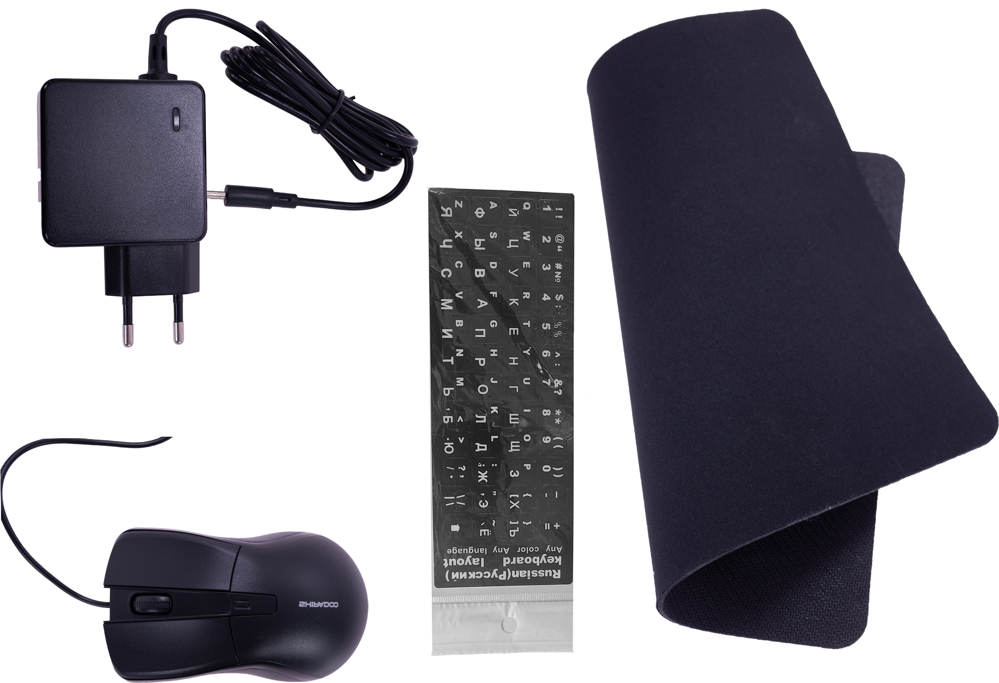 Ноутбук 1 шт, Блок питания 1 шт, Мышь 1 шт, Коврик 1 шт , Накладка на клавиатуру (RU-EN) 1 шт |