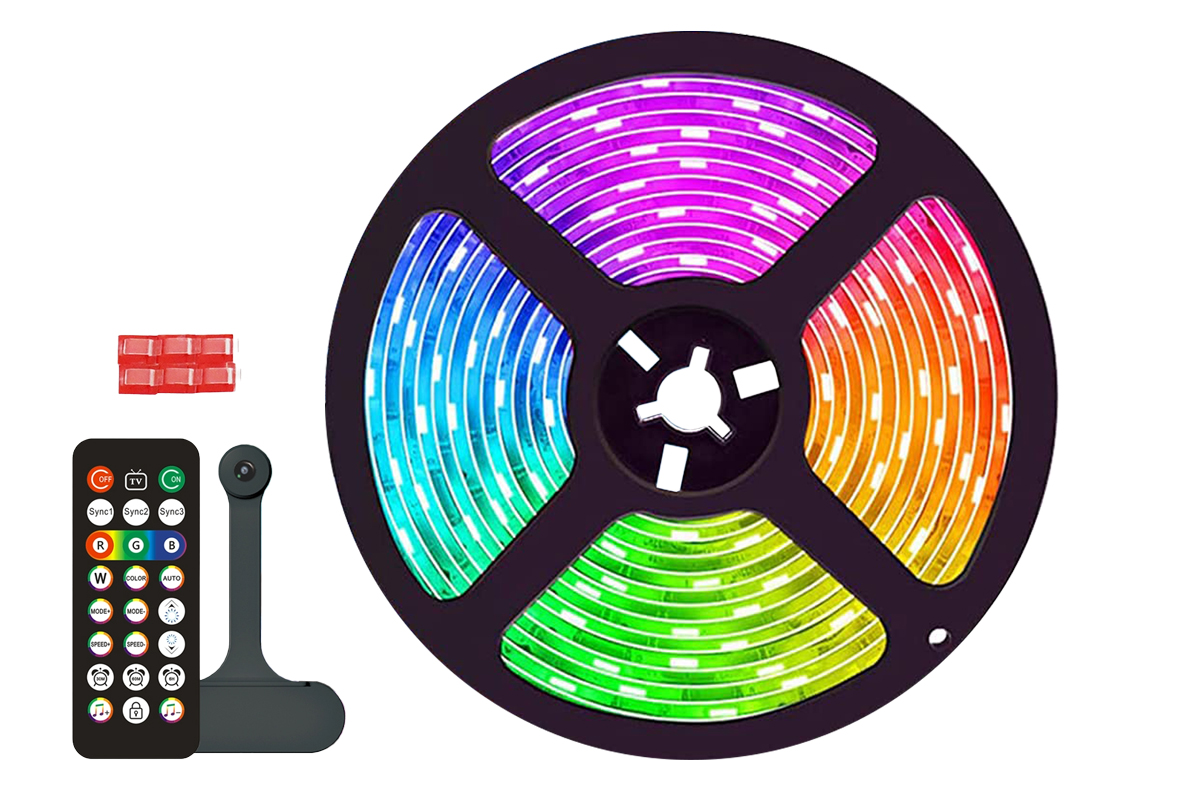 SUNTEK AI TV Backlight M2 75-85 Inch TV (MZ-TSBM2) – это динамическая подсветка экрана, которая представляет собой светодиодную ленту длиной 5.0 м в комплекте с датчиком света, пультом управления и клипсами для крепежа. Этот комплект предназначен для создания эффекта фоновой подсветки телевизора или монитора с интерфейсом USB и диагональю экрана от 75 до 85 дюймов. Сверхчеткий сенсор датчика на 3 миллиона пикселей с технологией распознавания цветов на основе ИИ сканирует экран, определяя основные цвета и в режиме реального времени синхронизирует подсветку с изображением. Подсветка создает захватывающий опыт просмотра, который увеличивает глубину изображения, позволяя погрузиться в атмосферу каждого кадра фильма или игры. Подсветка не требует специального программного обеспечения и не зависима от операционных систем. Установка системы подсветки простая, сначала надо протереть заднюю панель телевизора или монитора от пыли и приклеить светодиодную ленту начиная с верхнего левого угла двигаясь по часовой стрелке, а провод на поворотах закрепить клипсой. Затем надо отмерить середину экрана и расположить датчик света под углом 90°, соединить кабели датчика света и ленты и подключить USB-кабель от датчика к USB-порту телевизора. Управление подсветкой осуществляется с помощью пульта дистанционного управления 2,4G с кнопками для быстрой настройки режимов для фильмов, игр или музыки, управлением скоростью, яркостью и таймером подсветки. Динамическая подсветка экрана с легкостью создаст в вашей гостинной атмосферный домашний кинотеатр или киберпространство.