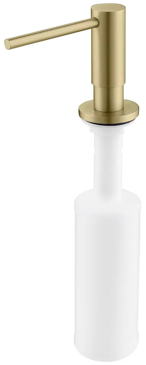 Dominion Дозатор Для Мыла (L011-BZG) Матовое Золото – это удобный и практичный аксессуар для организации чистоты и порядка на кухне и в ванной комнате. Встраиваемый дозатор не занимает много места и вписывается в любой интерьер. Скрытый тип размещения позволит сохранить больше рабочего пространства, избавит от визуального шума. Диспенсер легко заполнить сверху, не снимая емкость. Нажимная головка дозатора поворачивается на 360 градусов и приятно откликается на нажатие. Изделие выполнено из латуни и качественного АБС-пластика, которые не подвержены коррозии и не теряют своих свойств со временем. Дозатор устанавливается в отверстие в столешнице/мойке и фиксируется при помощи винтового крепления.