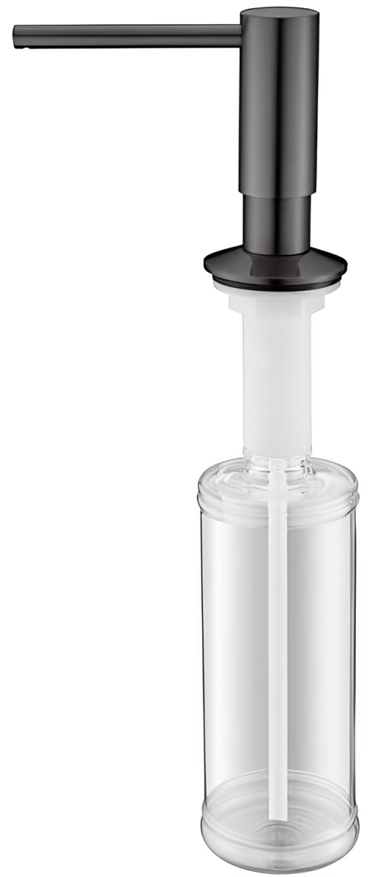 Dominion Дозатор Для Мыла (L011-GA) Графит – это удобный и практичный аксессуар для организации чистоты и порядка на кухне и в ванной комнате. Встраиваемый дозатор не занимает много места и вписывается в любой интерьер. Скрытый тип размещения позволит сохранить больше рабочего пространства, избавит от визуального шума. Диспенсер легко заполнить сверху, не снимая емкость. Нажимная головка дозатора поворачивается на 360 градусов и приятно откликается на нажатие. Изделие выполнено из латуни и качественного АБС-пластика, которые не подвержены коррозии и не теряют своих свойств со временем. Дозатор устанавливается в отверстие в столешнице/мойке и фиксируется при помощи винтового крепления.
