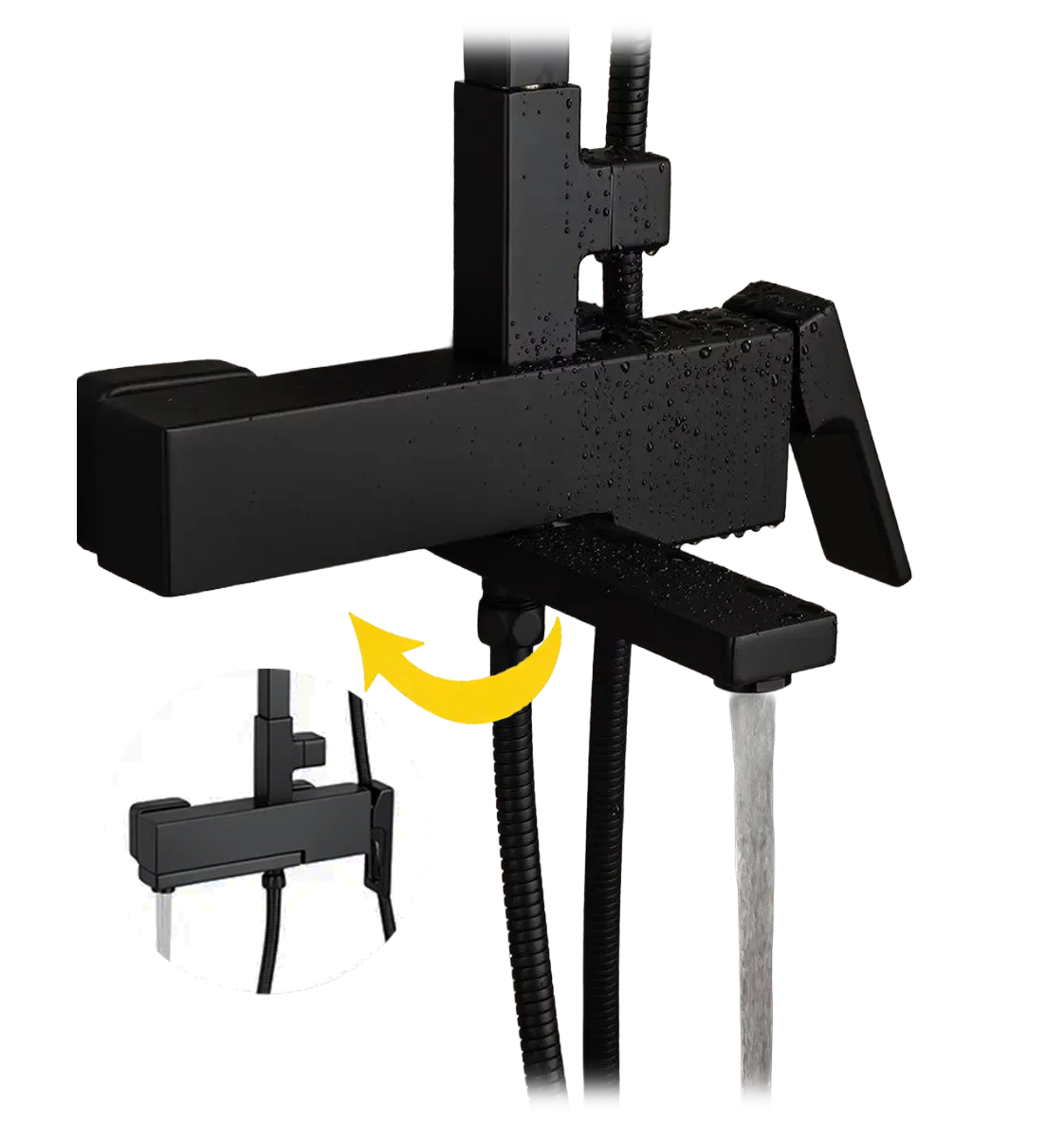 Dominion Душевая Система (61227-B) Черный – это душевая система, которая сочетает в себе стильный дизайн и современные технологии. Эта система станет настоящим украшением вашей ванной комнаты и обеспечит вам незабываемые моменты расслабления. Имеется три режима работы. Тропический душ для расслабляющего массажа, ручной душ для удобства и точности, а также возможность регулировки по высоте для максимального комфорта. Удобное рычажное управление позволяет легко настраивать температуру и поток воды, обеспечивая идеальные условия для принятия душа. Простота установки делает душевую систему подходящей для большинства стандартных ванных комнат. Изделие изготовлено из высококачественных материалов, что обеспечивает долговечность и устойчивость к коррозии. Поверхность матовая черного цвета.