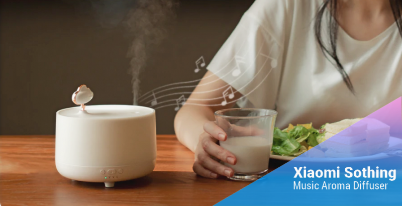 Xiaomi Sothing Music Aroma Diffuser – многофункциональный прибор, сочетающий в себе настольный увлажнитель воздуха и аромадиффузор с музыкальной шкатулкой.
