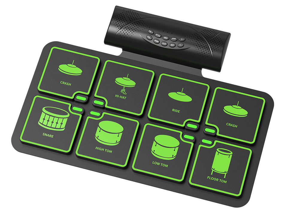 Xiaomi Roll Up Drum Kit MD863 - компактная портативная барабанная установка. Выполнена из гибкого силикона, благодаря чему легко сворачивается в рулон. В набор входят 8 пэдов, включая райд, хай-хэт, том-том, малый барабан и крэш, 2 ножные педали, 2 барабанные палочки. Доступно 7 тонов, 9 ритмических паттернов, 10 демо мелодий. Регулируемые громкость и темп. Помимо встроенного динамика устройство поддерживает подключение наушников, колонок. Устройство может быть подключено к компьютеру через Midi-выход или Micro-USB. Совместимо с Cakewalk, Sonar, Cubase, Nuendo и др. основными музыкальными ПО, а также совместимо с VST/VSTi.