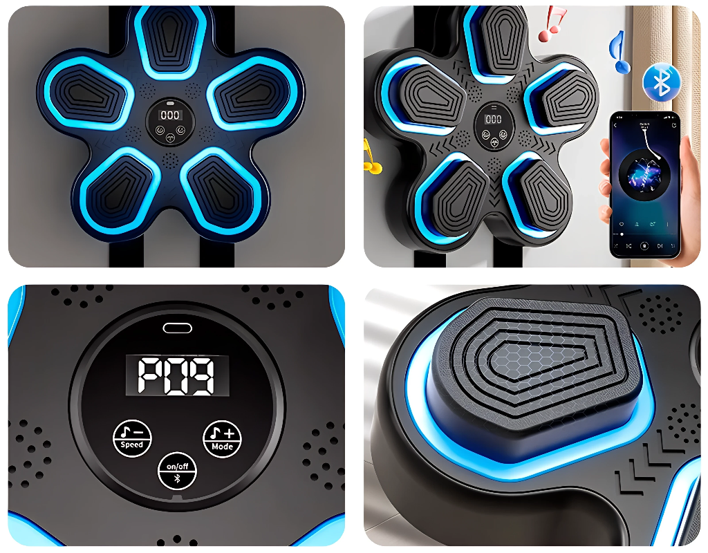 Music Boxing Machine (MB14) — это настенный боксерский тренажер, предназначенный для тренировки силы и скорости ударов, а также развития координации движений. Особенностью данного тренажера является его интерактивность. Он оснащен датчиками, которые позволяют отслеживать количество и скорость ударов, что помогает контролировать эффективность тренировок. Светодиодный дисплей будет показывать количество нанесенных вами ударов и записывать ваш прогресс. Умный боксерский тренажер поддерживает музыку по Bluetooth. Музыкальный боксерский тренажер оснащен 9 режимами и 9 скоростями. Таким образом тренажер может улучшить вашу скорость реакции и координацию тела. Тренажер пригодится профессиональным боксерам, людям, занимающимся фитнесом, людям, стремящимся похудеть, детям, подросткам, офисным работникам и т. д. Ударная поверхность тренажера изготовлена из высокоэластичного вспененного материала, который обладает сильным отскоком и амортизирующим эффектом, чтобы защитить ваши руки от травм во время тренировки. Устройство крепится вертикально на стену на липучки, которые входят в комплект. Зарядка тренажера осуществляется с помощью USB-кабеля. В комплект поставки входит тренажер для бокса, пара перчаток, липучки, кабель для зарядки, инструкция.