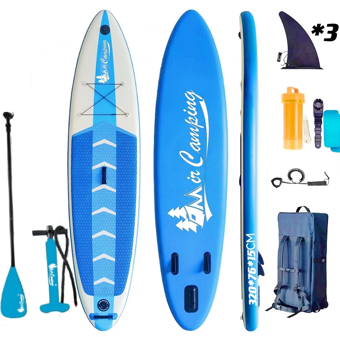 MirCamping Inflatable SUP 320*76*15 CRT-138 Blue - прогулочный надувной сапборд, что идеально подойдёт для активного отдыха людей всех возрастов. Сапбординг - это вид серфинга, в котором человек гребет не руками, а веслом. Именно за счет наличия весла, "сапбордить" можно даже в водоемах без волн и течения - достаточно любого озера или реки. Изготовлен из 2-х слоев ПВХ по технологии MSL Fusion и имеет высокую грузоподъемность в 180 кг.