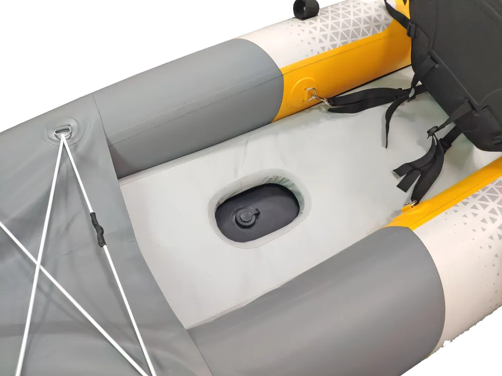 Tourus Kayak 328×85×23cm Yellow and Grey, TS-K01 - одноместный каяк, который изготовлен из долговечного ПВХ-материала и имеет длину 328 см, ширину 85 см. Он легкий и прочный, что делает его идеальным для длительных поездок на водоемы - озера, реки и моря. Каяк имеет 2 карго-отсека для хранения, которые позволяют вам хранить свои вещи на борту. Кроме того, он оснащен удобным сиденьем, чтобы обеспечить максимальный комфорт во время плавания.
