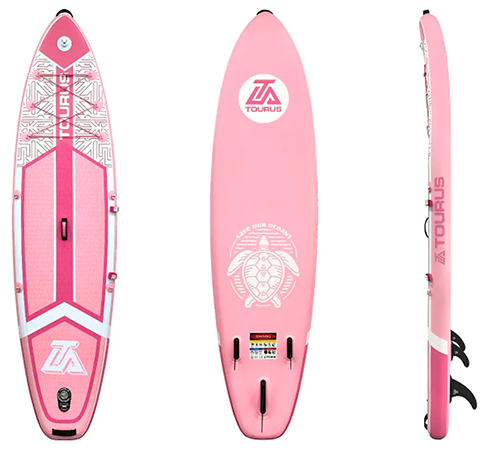 Tourus Inflatable SUP Board 320x81.3x15cm Pink, TS-JB01 – сап-борд классической овальной формы All-Round, которая подойдет как новичкам, так и опытным райдерам. Он изготовлен из прочного 2-слойного ПВХ-материала, который выдерживает высокое давление воздуха. Габариты 320х81х150 см и наличие 3-х плавников делает ее очень устойчивой. Доска оборудована системой для удобного расположения багажа. Максимальный вес - 150 кг. На носу сап-борда есть специальное крепление для установки экшн-камеры.