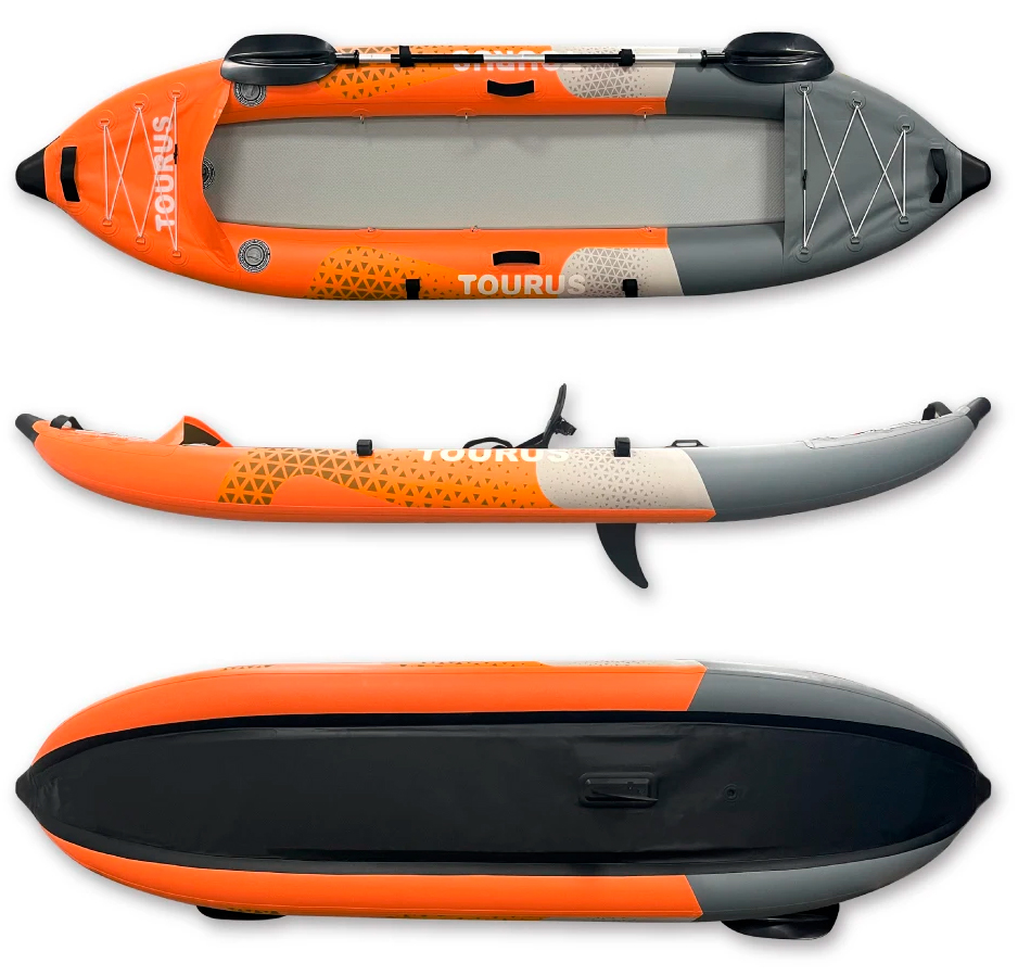 Tourus Inflatable One Seats Kayak 328x85x23cm Orange and Grey, TS-K03 – одноместный каяк, который изготовлен из долговечного ПВХ-материала и имеет длину 328 см, ширину 85 см. Он легкий и прочный, что делает его идеальным для длительных поездок на водоемы - озера, реки и моря. Каяк имеет 2 карго-отсека для хранения, которые позволяют вам хранить свои вещи на борту. Кроме того, он оснащен удобным сиденьем, чтобы обеспечить максимальный комфорт во время плавания. Максимальная грузоподъемность 125 кг.