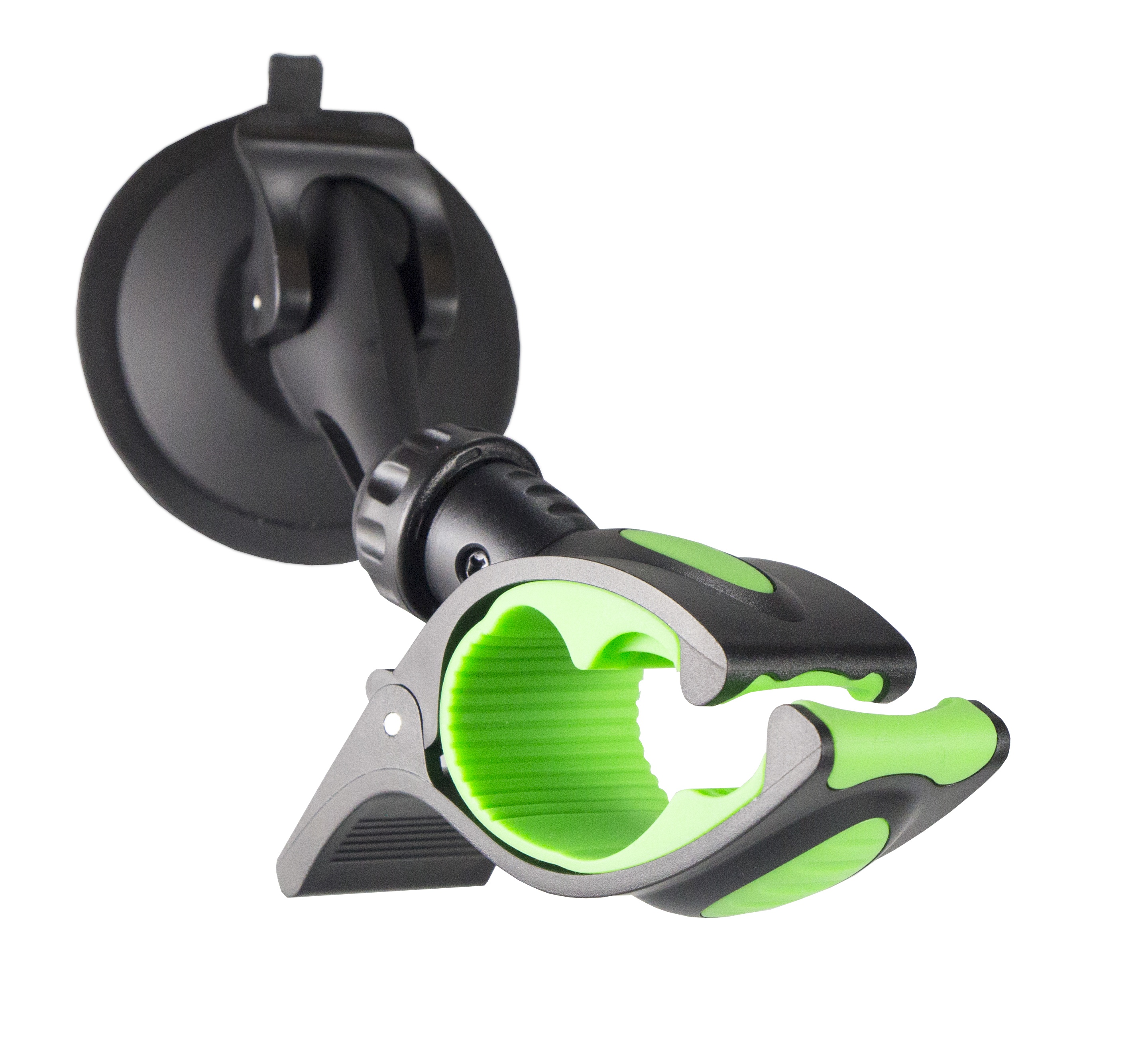 Кронштейн крепится на лобовое стекло вашего автомобиля. Благодаря вакуумной защелке кронштейн надежно крепится на стекле.
