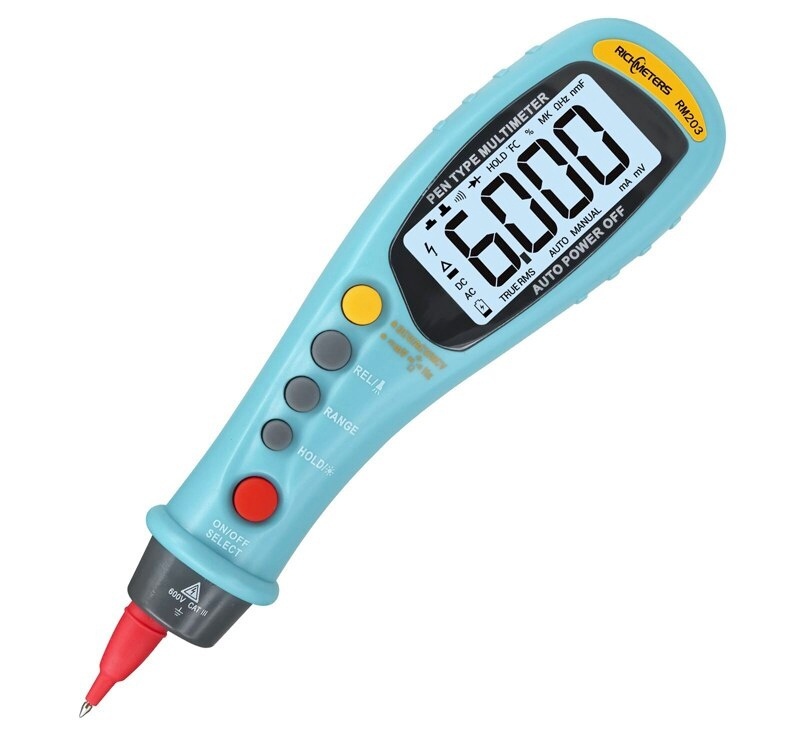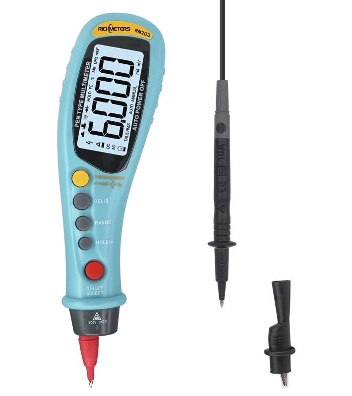 RichMeters RM203 Мультиметр - это цифровой мультиметр с питанием от батареек, автоматическим выбором диапазона, ЖК-дисплеем с подсветкой. Поддерживает измерение постоянного и переменного напряжения, сопротивления, емкости и частоты, а также тестирование диодов. Дополнительно есть функции True-RMS и NCV. Пять функциональных кнопок вместо традиционного поворотного переключателя позволяют работать одной рукой, что делает ваши измерения более удобными и эффективными. Количество единиц счета - 6000.