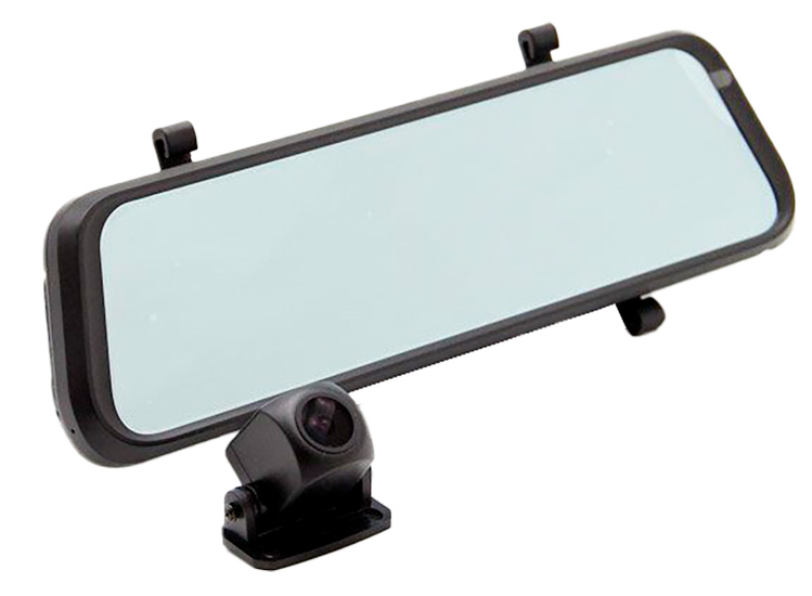 Eplutus D84 - это автомобильный видеорегистратор, который оснащен встроенным микрофоном и 10-дюймовым сенсорным экраном, закрепляемым специальными ремешками на зеркале заднего вида. За счет наличия передней и задней камер с углами обзора 170 и 120 градусов соответственно устройство позволяет эффективно контролировать обстановку на дороге как при движении вперед, так и в процессе перемещения задним ходом. При этом переключение камер происходит автоматически в зависимости от текущего состояния коробки передач.