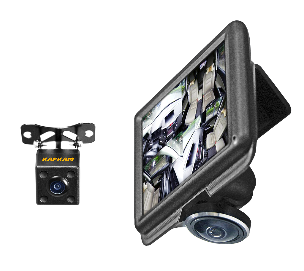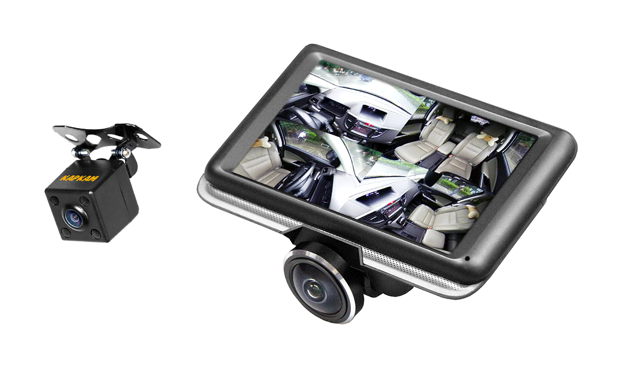 CARCAM А360 – автомобильный видеорегистратор, оснащённый широкоугольным объективом с углом обзора 360°, который позволяет фиксировать дорожную обстановку как перед автомобилем, так и по бокам от него. Также в поле зрения объектива попадает весь салон автомобиля, благодаря этому вы сможете контролировать обстановку в салоне авто, при этом не прекращая съемку в направлении движения. Помимо этого в комплект входит дополнительная камера для фиксации обстановки позади автомобиля. Устройство оснащено сенсорным дисплеем 4.5”, что обеспечивает быструю и удобную навигацию в меню видеорегистратора.