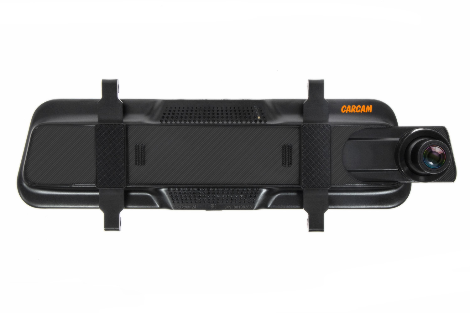 CARCAM Z8 — автомобильный двухкамерный Quad HD видеорегистратор, оснащенный внешним GPS-модулем. Устройство выполнено в корпусе накладки на зеркало заднего вида. Универсальные эластичные крепления позволяют установить видеорегистратор в большинстве современных автомобилей. Основная камера регистратора ведёт съемку в разрешении 2560×1440p и обладает углом обзора 150°. Дополнительная камера с углом обзора 130° записывает видео в разрешении 1920×1080p. Для максимально удобного использования режима парковочной камеры и просмотра записанных видео устройство оснащено большим сенсорным LCD-дисплеем с диагональю 9.66″.