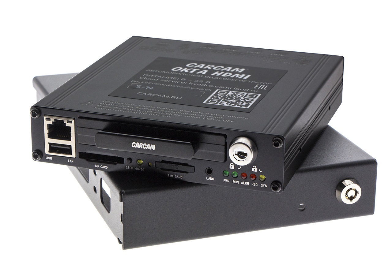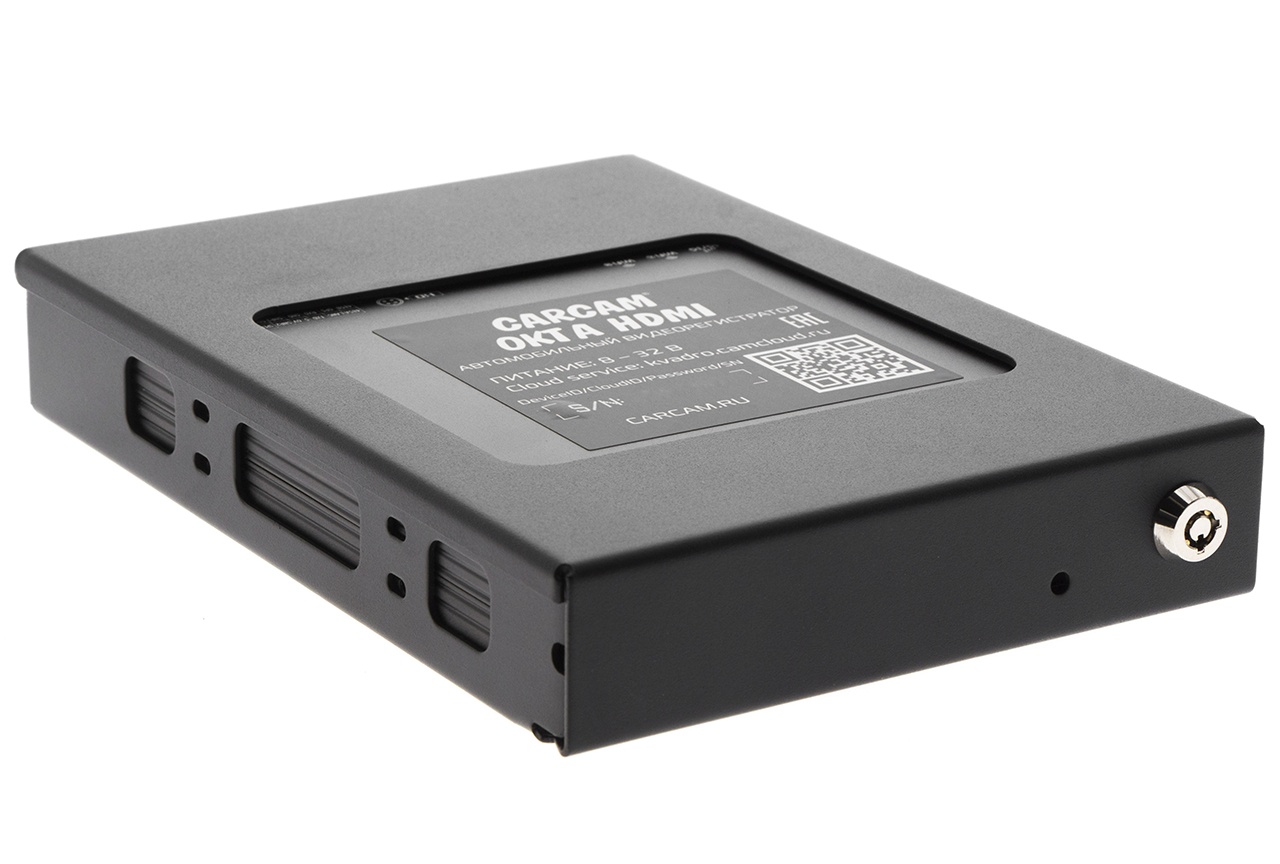 CARCAM OKTA HDMI – 9-канальный автомобильный видеорегистратор с возможностью подключения 1 цифровой камеры и 8 AHD камер с разрешением Full HD. Сохранение данных может производится как на HDD/SSD диск объемом до 2 ТБ, так и на SD карту объемом до 256 ГБ. Наличие выходов HDMI и AV позволяет подключать к устройству любой современный автомонитор для просмотра изображения с камер в режиме реального времени. Также регистратор поддерживает подключение различных тревожных датчиков и дополнительных модулей, таких как GPS/ГЛОНАСС-модуль, 3G/4G модем, тревожная кнопка и резервный источник питания.