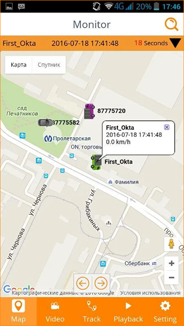 В данном разделе вы сможете отслеживать местоположение транспортного средства в режиме реального времени.