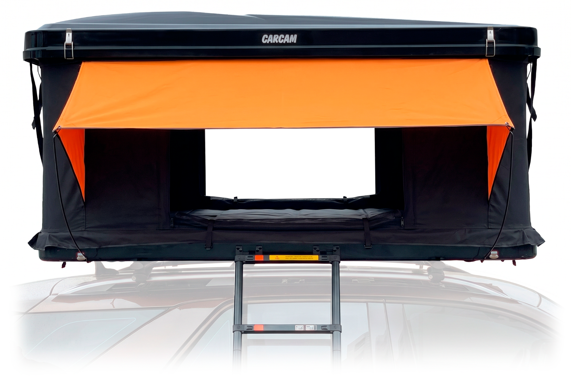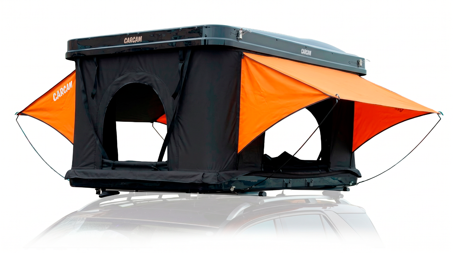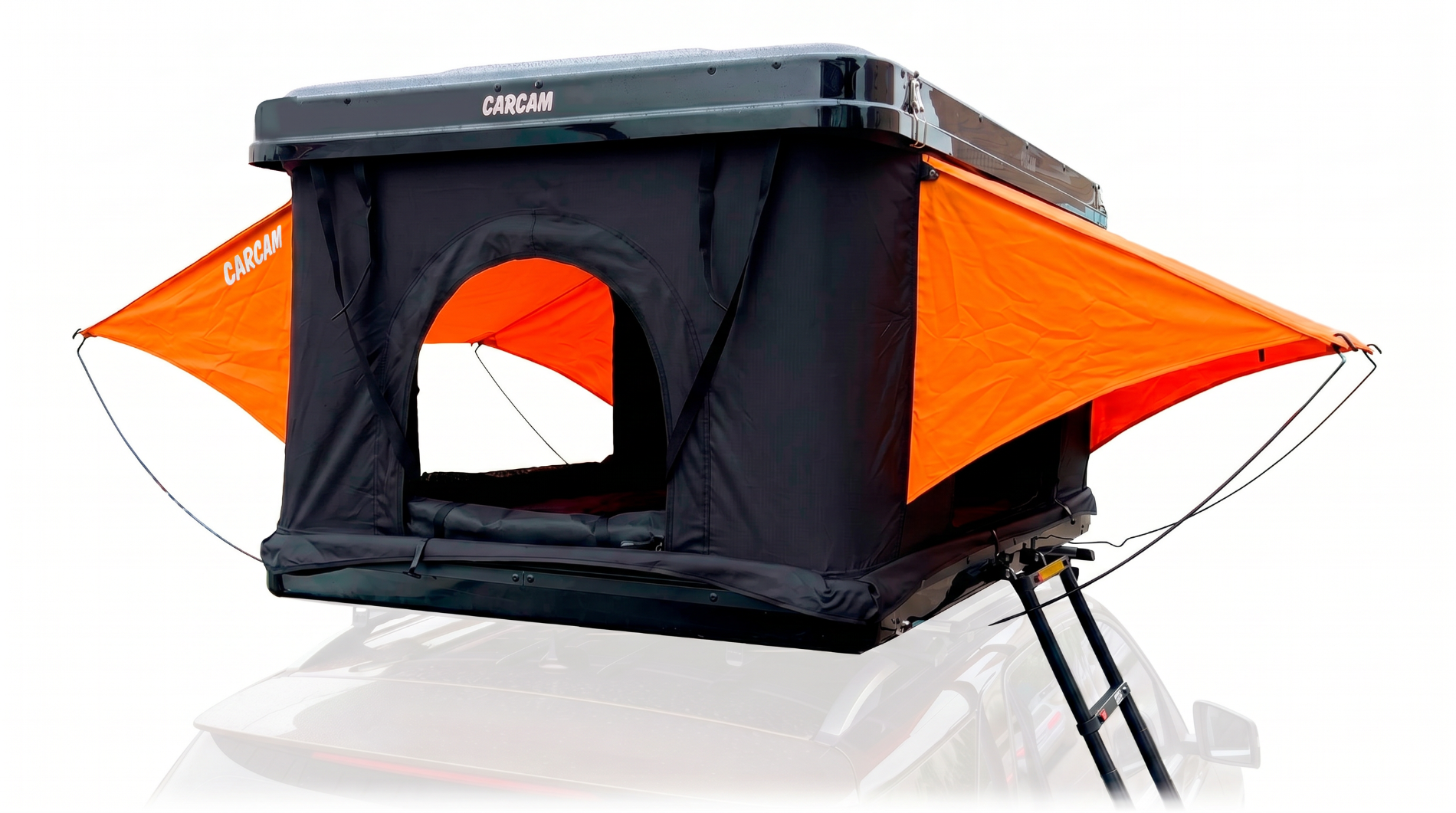 CARCAM ROOF TENT 601WP – это автомобильная палатка, которая располагается на крыше машины, что дарит комфорт и удобство в выборе места для ночлега. С автомобильной палаткой не нужно мучаться с установкой дуг, колышков, растяжек, а потом все собирать обратно, процесс открытия палатки быстрый и легкий, так как она оснащена гидравлическим подъёмным механизмом. Каркас изготовлен из прочного алюминия, покрыт тентом из водонепроницаемой ткани Oxford 420D с полиуретановым покрытием, материал устойчив к ветру и ультрафиолетовому излучению. В комплекте идет выдвижная лестница из алюминиевого сплава длиной 2,6 м, для комфортного входа в палатку. Все окна оборудованы москитными сетками, для защиты от надоедливых насекомых. Также в палатке имеются отдельные вентиляционные отверстия и специальное отверстие для подвода шланга от автономных и иных отопителей. Пол палатки это мягкий удобный матрас из губчатого материала высокой плотности 30D со съемным чехлом. Также палатка оборудована встроенным освещением в виде светодиодной ленты, которая работает от внешних источников питания, для большего комфорта. Автомобильная палатка раскладывается до размеров 215х128х101 см, что позволяет с комфортом разместиться внутри и выдерживает нагрузку до 300 кг. В сложенном виде габариты составляют 215х130х24 см, а корпус выполнен из ударопрочного АБС пластика. В комплекте с палаткой также идет 2 чехла для обуви и аксессуаров.