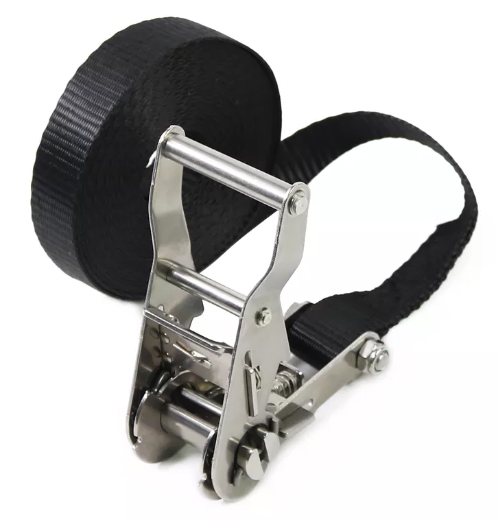 Ремень с храповым механизмом CARCAM (стальная ручка) 5м Черный – сверхмощный ремень черного цвета длиной 5 метров и шириной 25 мм, используемый для крепления груза. Изготовлен из 100% полиэстера высокой прочности. Выдерживает нагрузку до 1500 кг. Обладает стальным храповым механизмом и стальной ручкой.