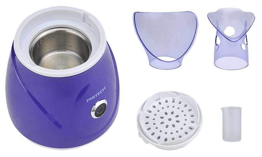 Pritech LD-6238 PURPLE – сауна для лица с насадкой для ингаляций подходит для кожи любого типа. Это удобный и практичный прибор для тех, кто хочет обеспечивать своему лицу профессиональный уход, не выходя из дома. Модель оснащена большой пластиковой чашей анатомической формы с закругленными краями. На корпусе расположена всего лишь одна сенсорная кнопка, что обеспечивает простоту управления. В комплекте поставляется специальная емкость, которая позволит использовать прибор для ингаляции травяными сборами. Оптимальное время процедуры составляет 4-6 минут. После распаривания кожи эффективность кремов и масок увеличивается. Предусмотрена функция автоматического отключения прибора при малом количестве воды.