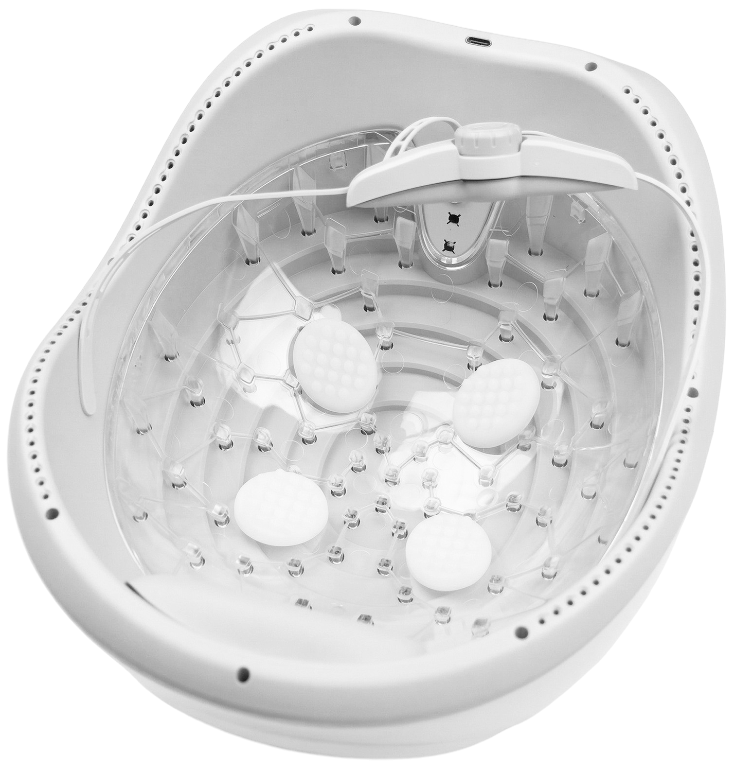 Низкоинтенсивная лазерная терапия (LLLT), 80 лазерных диодов, Подходит для окружности головы 56 - 66 см, Мощность лазера — 10 мВт/см² ±10%, Длина волны лазера — 650-670 нм ±10 нм, Частота процедур — по 20 минут через день, Количество использований на 1 заряде — 6-7 раз, Функция памяти, Таймер на 20 минут |