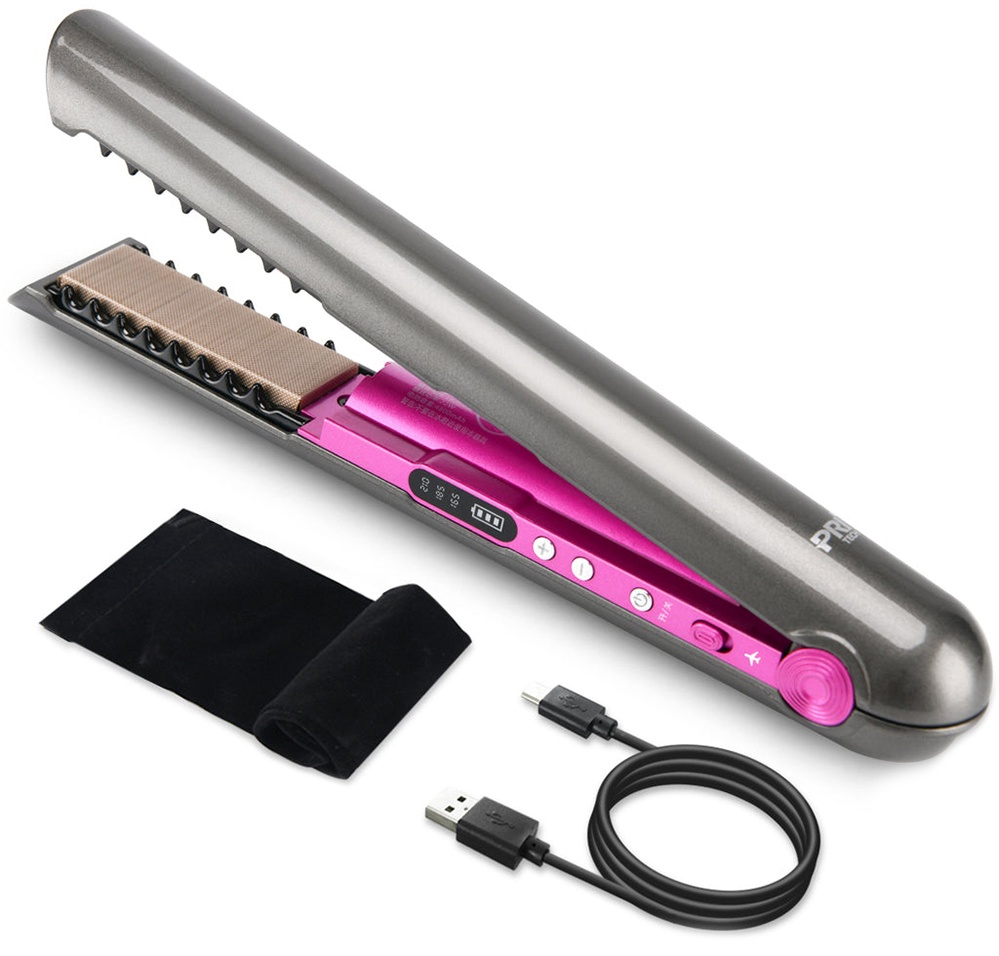 Pritech TA-2888 – беспроводной выпрямитель для волос с LED-дисплеем, USB кабелем и 3 режимами нагрева поможет восстановить или создать укладку, где бы вы ни были дома, в отпуске или командировке. Он не займет много места даже в небольшой дамской сумке: размер 18х3,3 см, вес 150 г. Выпрямитель работает от литий-ионной батареи емкостью 4000 мАч, которая заряжается от USB кабеля, входящего в комплект. Полная зарядка занимает 2 часа. В данной модели предусмотрена функция "Автоотключение".
