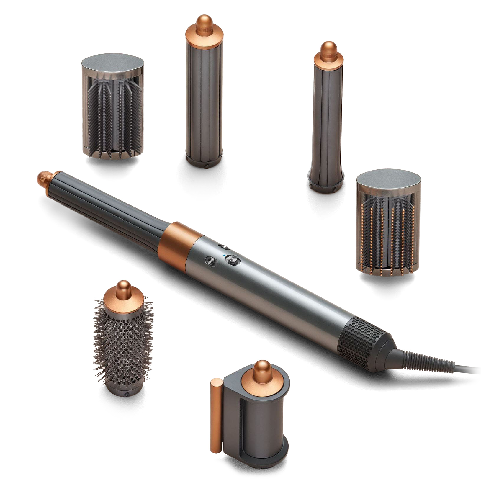 Supersonic Airwrap Complete Long (HS05) Nickel Copper - это долгожданная новинка по уходу за длинными волосами. Универсальный стайлер с 6 насадками, который можно использовать для завивки, выпрямления, сушки волос и создания разных причесок. Также оснащен эффектом Коанда и датчиком контроля температур. Он полностью безопасен для волос и кожи головы.