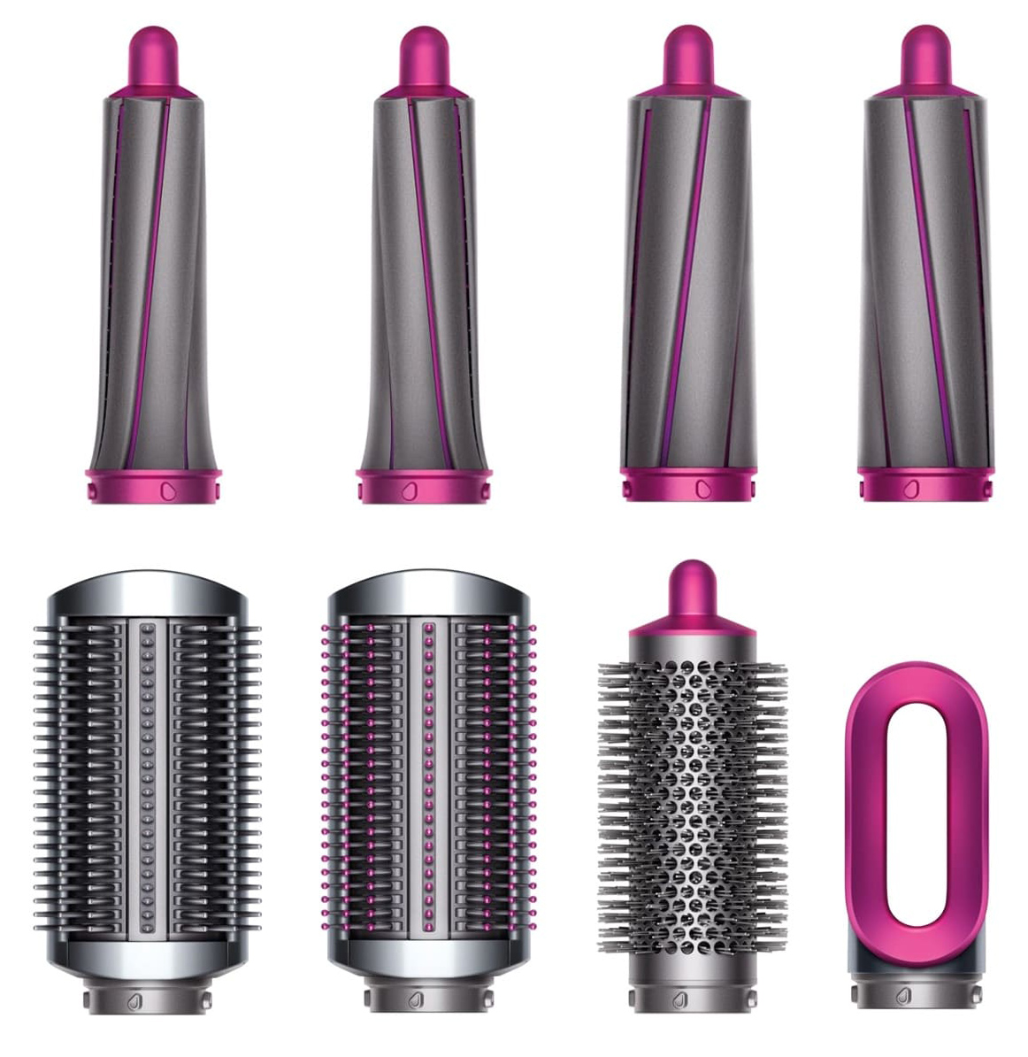 Supersonic Airwrap Complete (HS01) Fuchsia -это универсальный стайлер с 8 насадками, который можно использовать для завивки, выпрямления, сушки волос и создания разных причесок. Имеет мощный двигатель со скоростью вращения до 110 000 об/ мин, что создает струю контролируемого воздуха, функцию интеллектуальной защитой от перегрева.