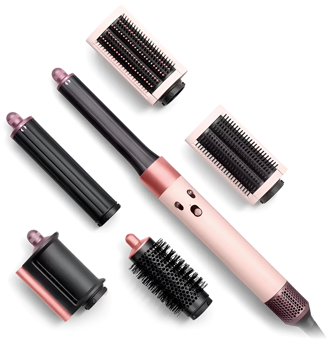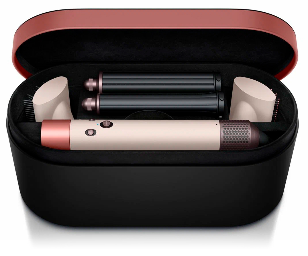 Supersonic Airwrap Complete Long (HS05) Ceramic Pink/Rose Gold - универсальный стайлер с 6 насадками, который можно использовать для завивки, выпрямления, сушки волос и создания разных причесок. Его мощность в 1300 Вт, а цифровой двигатель вращается со скоростью до 110 000 об/мин. Мультистайлер имеет 3 уровня нагрева и 3 скорости работы, включая режим холодного воздуха. Также он оснащен эффектом Коанда и датчиком контроля температур. Устройство полностью безопасно для волос и кожи головы.