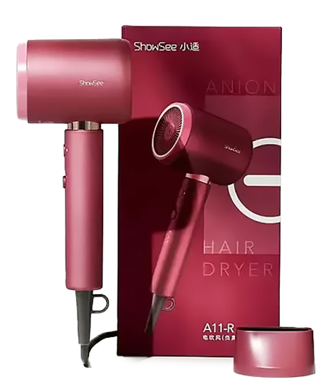 Xiaomi ShowSee Red (A11-R) – эргономичный фен мощностью 1800 Вт. Интеллектуальное поддержание температуры уберегает волосы от перегрева и повреждений. Переключатель горячего и холодного потока. Многоступенчатая регулировка температуры и скорости ветра. Внутри фена установлен ионизатор, который помогает бороться с секущимися кончиками, а также придаёт волосам блеск и мягкость. В комплект входит специальная насадка для направленного потока воздуха.