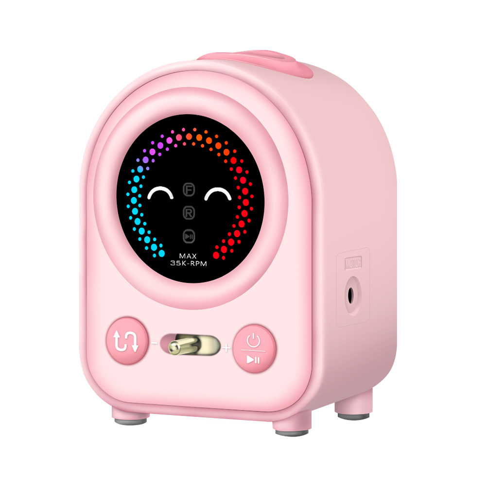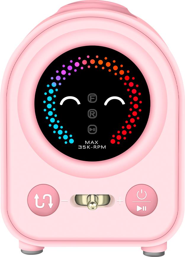 JIMDOA Portable Nail Drill JMD-222 Pink - новый стильный аппарат для маникюр и педикюра. Неповторимый дизайн впишется в любой интерьер и не оставит равнодушным ни одного мастера, привлечет внимание каждого клиента. При включении аппарата появится милый улыбающийся смайлик. Имеет удобный цветной индикатор скорости работы мотора. Плавное переключение скорости рычагом на фронтальной панели. Кнопка реверса. Кнопка включения/выключения и паузы. Отверстие для держателя наконечника сверху на корпусе. Откидной ящик для хранения сверл на задней стороне корпуса. Мягкие накладки на ножках корпуса предотвратят скольжение. Система вентиляции на дне корпуса защитит от перегрева