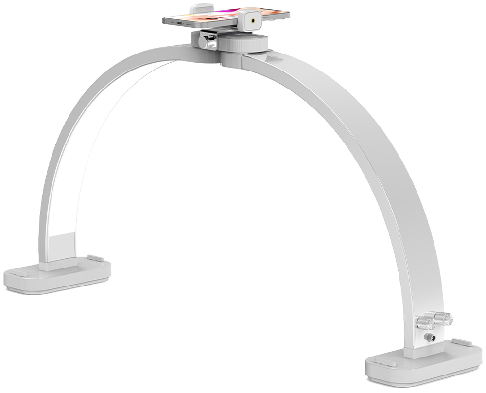 В комплект поставки входят: основная лампа, две базы, адаптер, держатель для смартфона и подробная инструкция. Дополнительный держатель позволяет фиксировать телефон для записи процесса маникюра или трансляции в реальном времени, делая лампу незаменимой для блогеров и профессионалов.