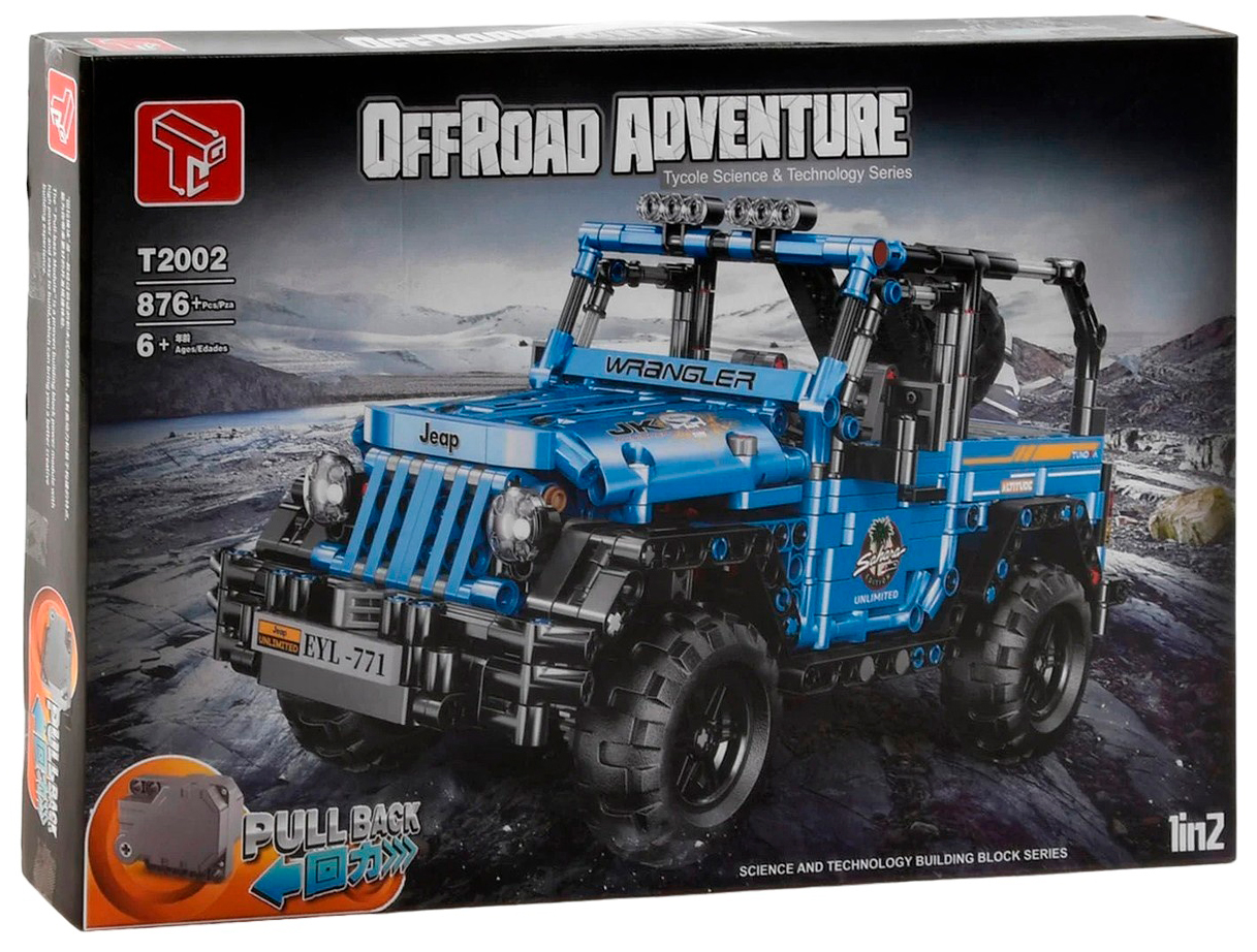TaiGaoLe Wrangler OffRoad Adventure (T2002) Blue – игровой конструктор с инерционным механизмом, который позволяет создать точную копию объекта в масштабе 1:10. Общее количество деталей конструктора – 876 штук. Сборка детализированной модели джипа увлечёт не только ребенка, но и взрослого. Блоки совместимы с конструкторами других производителей, что предоставляет неограниченные возможности для творчества и комбинирования деталей. Подходит для детей от 6 лет.