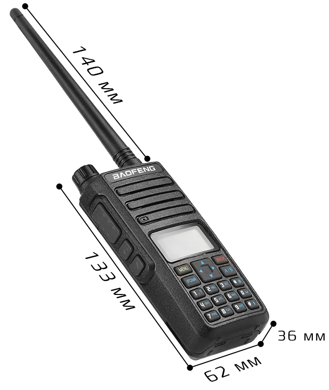 Baofeng DR-1801UV (DM-1801) – компактная радиостанция с 2 режимами связи. Помимо стандартной аналоговой связи, рация поддерживает цифровой режим. Благодаря ему вы сможете разговаривать со своим собеседником так же, как по телефону. В цифровом режиме звук передается без характерного шипения и не искажается при слабом сигнале. Рация работает в двух диапазонах - 136-174 и 400-480 МГц. Благодаря аккумулятору емкостью 2200 мАч вы можете пользоваться рацией до 17 часов без подзарядки.