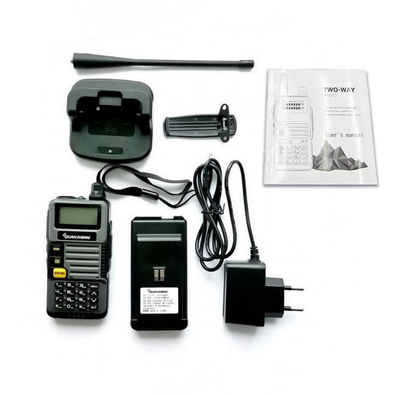 Радиостанция, Антенна, Зарядное устройство, Клипса на пояс, Ремешок |