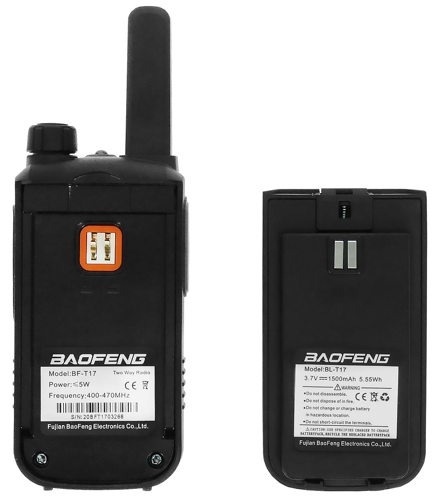 Набор раций Baofeng BF-T17/2 – комплект из двух компактных раций с радиусом действия до 6 километров. Модель подойдет как для работы, так и для активного отдыха или туризма. Благодаря компактным габаритам устройство не займет много места в вашем рюкзаке, а также легко поместится в карман.
