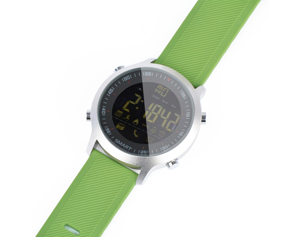 CARCAM SMART WATCH EX18 – водонепроницаемые смарт-часы, оснащенные функциями фитнес-трекера. Благодаря встроенному акселерометру, устройство зафиксирует каждый ваш шаг и рассчитает количество потраченных калорий в течение дня. Для удобного просмотра информации о пройдённом расстоянии и общей активности, вы сможете синхронизировать часы с вашим смартфоном. Также, благодаря функции синхронизации, часы смогут оповестить вас о пропущенных звонках и входящих сообщениях на ваш мобильный. Встроенная батарейка обеспечит до 12 месяцев постоянной работы устройства в зависимости от режима работы.