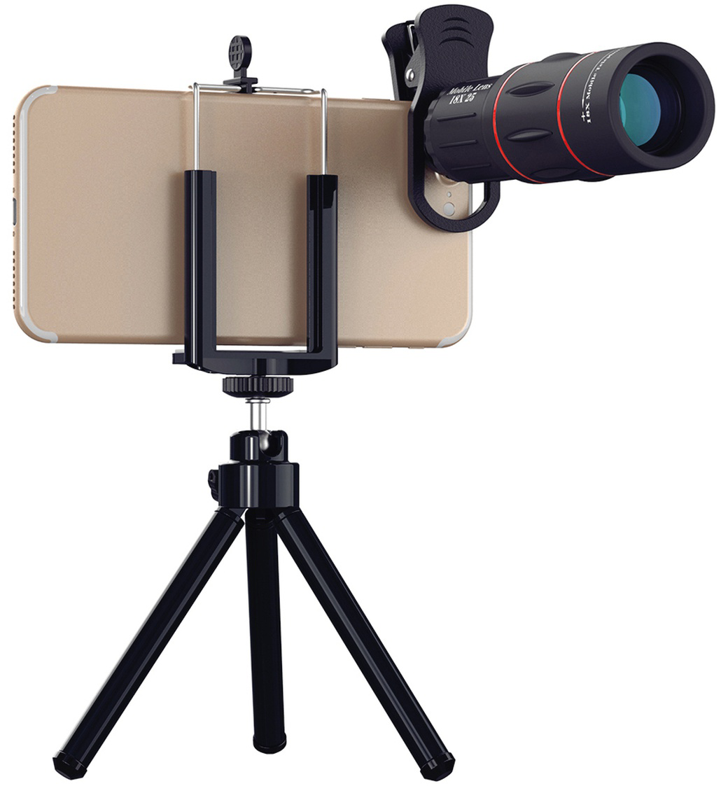 Apexel 18X Telephoto Lens With Tripod (T18XZJ) – это регулируемый оптический зум-объектив калибром 25 мм и диаметром 3.7 см для камеры смартфона. Он предлагает 18-кратное увеличение, что позволяет запечатлеть отдалённые объекты с высокой точностью. В отличие от цифрового масштабирования, которое часто приводит к пикселированным изображениям, этот объектив сохраняет исходное качество, обеспечивая чёткие и подробные фотографии. Подходит для большинства смартфонов, включая модели для систем Apple и Android. Изделие выполнено из качественного оптического стекла и прочного ABS пластика. Объектив можно использовать как монокуляр. Он компактный и лёгкий, что позволяет легко носить его с собой. Объектив фиксируется на устройстве при помощи специальной клипсы, которая идет в комплекте. Также в набор входит салфетка для очистки и небольшой компактный трипод с надёжным фиксатором, который позволяет установить смартфон и делать снимки с большим комфортом.