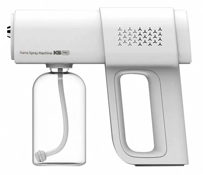 Modengo Nano Spray Machine K5 Pro (A0027) - автоматический распылитель для дезинфекции одежды, салона автомобиля, комнатных растений, для влажной уборки в помещении. Распылитель обеспечивает качественную дезинфекцию благодаря эффективной системе распыления, которая, как доказано, убивает вредные бактерии и вирусы. При распылении жидкости автоматически включается ультрафиолет, что увеличивает эффективность процесса очистки. Автоматическая система избавляет от ручной работы. Можно использовать распылитель с водой, дезинфицирующим средством, либо с антимоскитным репеллентом при выезде на природу. Есть две мощности распыления. Примечание: перед использованием распылитель необходимо полностью зарядить. Каждая зарядка занимает 3 часа. Запрещается использовать нерастворимые в воде дезинфицирующие растворы, так как они могут легко заблокировать форсунки.