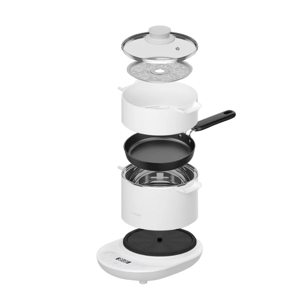 Xiaomi Qcooker Multipurpose Electric Cooker – универсальная и компактная электрическая плита с комплектом из кастрюли, пароварки и сковороды. Посуда выполнена из нержавеющей стали. Функция отложенного включения позволит вам готовить еду в удобное для вас время и сохранит еду горячей к вашему приходу. Посуда оснащена теплоизолированными ручками и плотной крышкой из закаленного стекла.