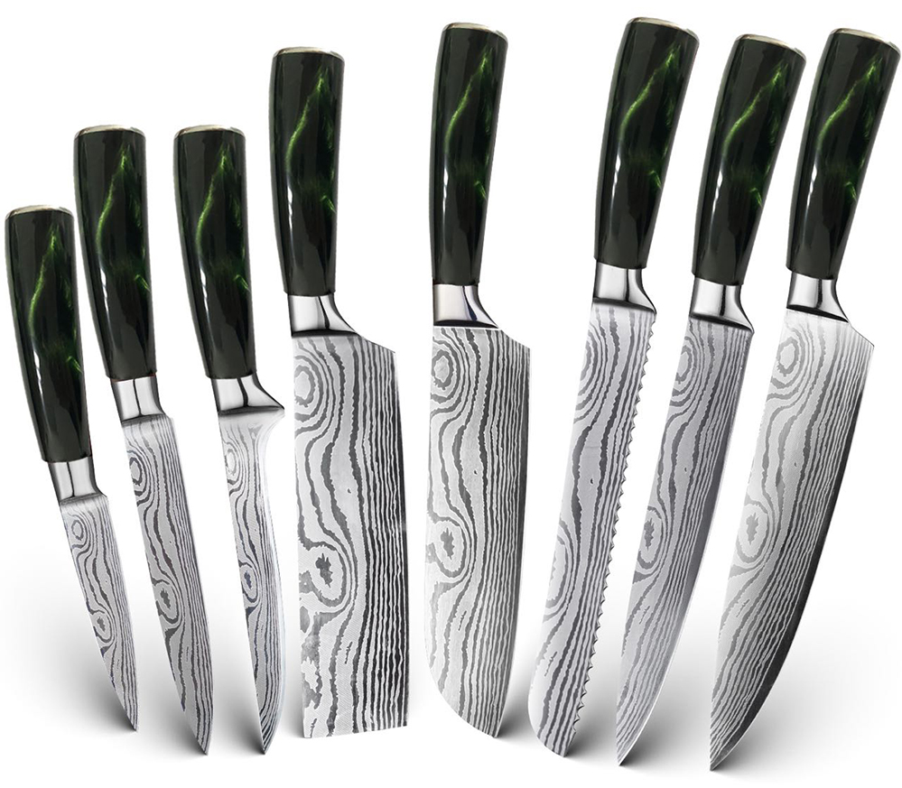 Xiaomi Spetime 8-Pieces Kitchen Knife Set Green (GE03KN8) – универсальный набор кухонных ножей. В набор входят 8 ножей из высокоуглеродистой нержавеющей стали 5Cr15MoV. В комплекте ножи: разделочный, для хлеба, шеф-нож, сантоку, накири, обвалочный, универсальный, для овощей. Эргономичная форма ручки для идеального баланса. Стильный дизайн для современной кухни. Простота очистки и обслуживания.
