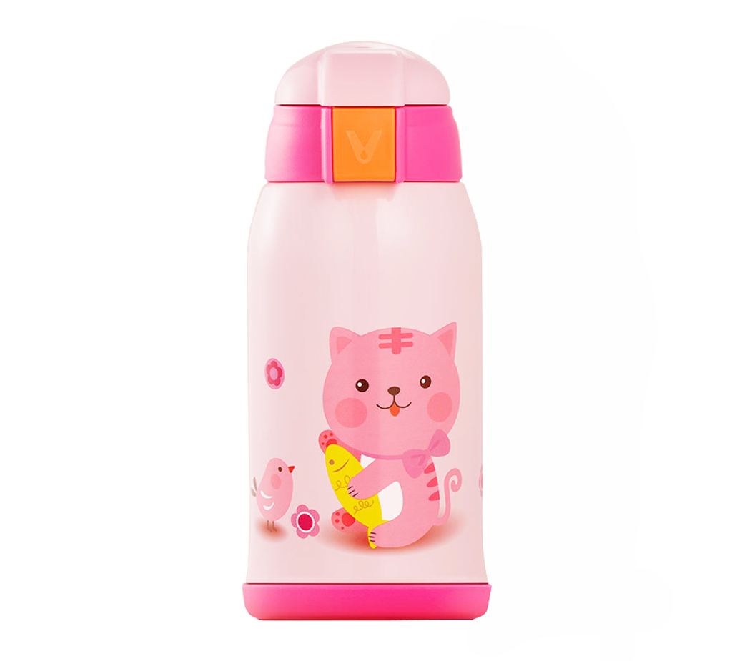 Xiaomi Viomi Children Vacuum Flask 590 ml Pink – вакуумный термос объемом 590 мл для детей. Термос обладает забавным и интересным дизайном, который несомненно понравится любому ребенку. Между внутренним резервуаром и стенками корпуса создан вакуумный слой, который препятствует теплообмену и позволяет сохранять жидкость теплой в течение 12 часов. Внутренняя стенка покрыта медным отражающим напылением и удерживает тепло внутри термоса.