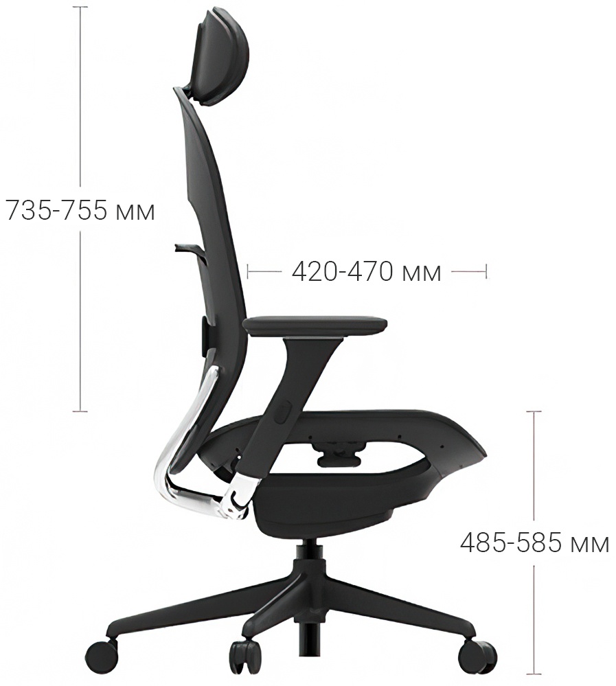 Регулировка подлокотников в трех направлениях помогает настроить их оптимальным образом под собственный рост или высоту стола, чтобы поддерживать руки и не сковывать движения.