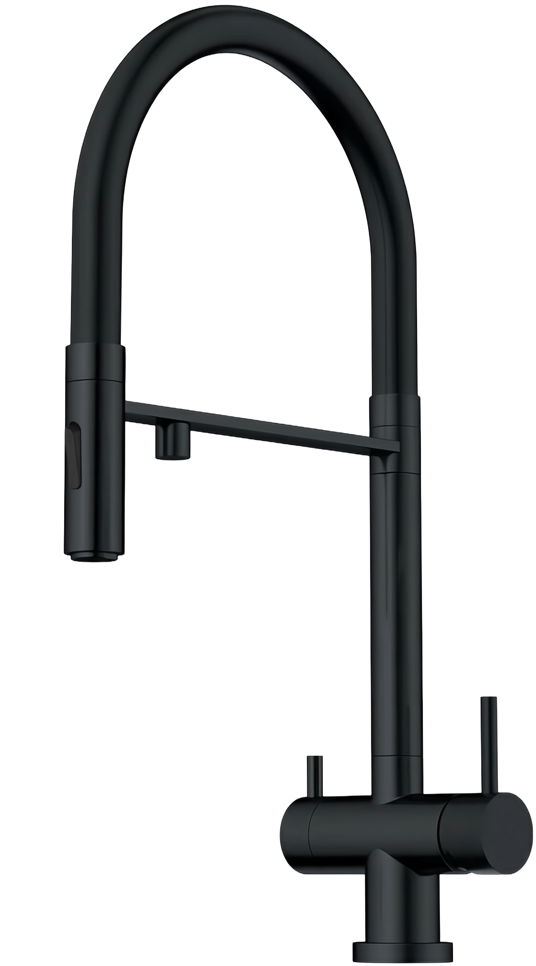 Dominion Кухонный Смеситель С Гибким Изливом (KT0414-B) Черный – функциональный, выполненный в лаконичном актуальном дизайне, позволяет эстетично оформить зону мойки на вашей кухне. Гибкий излив позволяет легко регулировать направление струи воды, также его можно зафиксировать, с помощью магнитного механизма держателя. Подача водопроводной воды регулируется рычагом справа, а кнопка, расположенная на гибком изливе позволяет выбрать один из двух режимов подачи струя или душ. Пластиковый аэратор не только смягчает воду, делая ее более приятной для использования, но и предотвращает разбрызгивание. В держатель интегрирован излив с независимым каналом для питьевой воды из фильтра, управление подачей питьевой воды производится рычагом слева. Излив можно поворачивать на 360 градусов, что позволяет подстраивать смеситель под любой размер раковины. Данный смеситель обеспечит эстетичность, комфорт и функциональность на вашей кухне, а совмещение подачи питьевой и водопроводной воды в одной конструкции избавит от необходимости ставить дополнительный кран.
