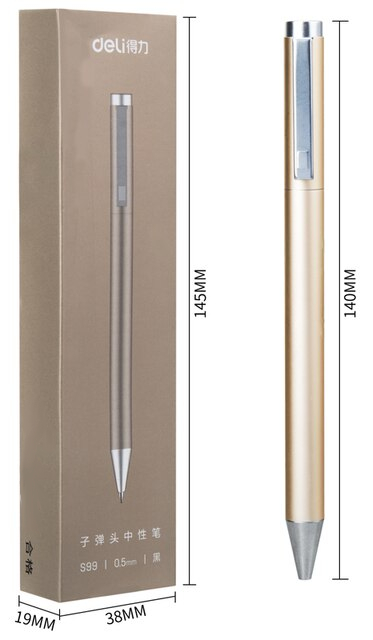 Xiaomi Deli Pen S99 Gold - автоматическая гелевая ручка, которая имеет металлический корпус и длину 14 см. Цвет чернил - черный, диаметр пишущего наконечника - 0.5 мм. Ручка предназначена для работы и учебы, имеет эргономичный дизайн, поэтому удобно лежит в руке. Пишет мягко, благодаря чему не царапает бумагу. С помощью клипа ручку можно надевать на карман или тетрадь. Подходит для любых письменных задач, за счет чего практична в использовании.